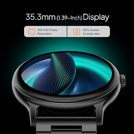 - 1.39” Ultra-HD Round Display Smartwatch – Experience a stunning 1.39-inch high-definition display with vibrant colors, smooth touch response, and ultra-clear resolution. This round dial smartwatch for men and women offers a premium look with an easy-to-read interface for seamless navigation
